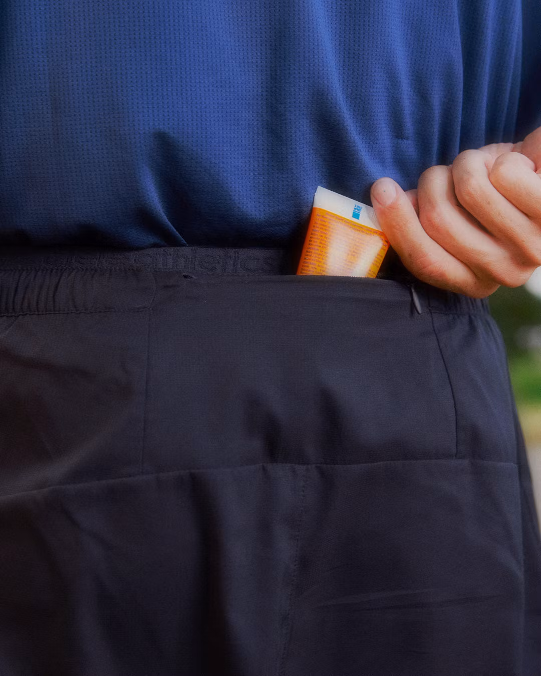 a zippered back packet for fuel, a card, a key and a dollar bill. a reverse stitched, no chafe, COOLmatic|PLUS™ long brief treated with HeiQ Smart Temp® for accelerated wicking and HeiQ Fresh® for odour control. extra stretch cargo fuel and phone pocket integrated in the brief for extra storage on long runs.