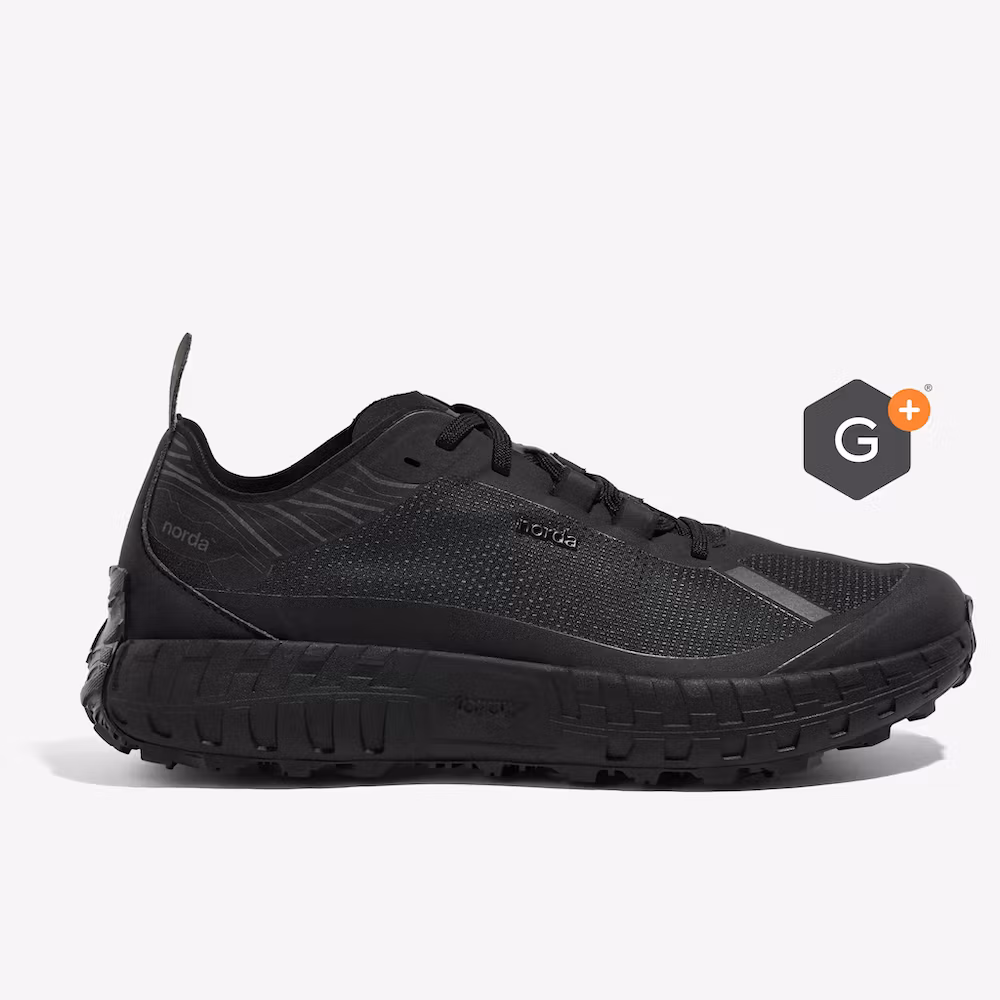 Introducing the norda™ 001 Stealth Black with a G+ Graphene Waterproof membrane. The Stealth Black features the world's first and onlybio-based black Dyneema® the world's strongest and lightest fibre™. The all-black upper is lined with a G+® graphene membrane, waterproof to 10,000mm for additional warmth and dryness, all while remaining highly breathable. The ultimate all-weather training tool.